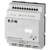 Programowalny sterownik EASY-512-DC-RC firmy Moeller z zegarem czasu rzeczywistego, wyświetlaczem, klawiaturą, 8 wejściami i 4 wyjściami przekaźnikowymi.