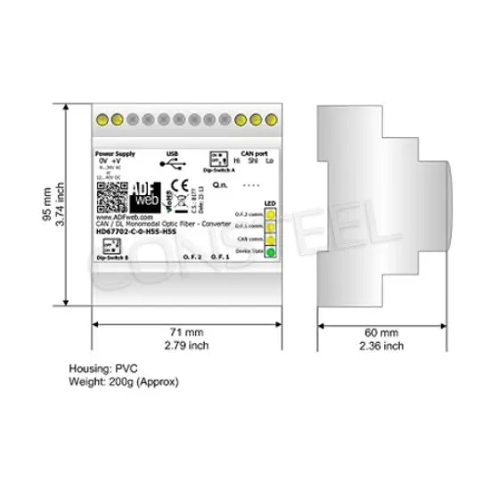 - Ports: 1x RS485; 1x USB; 1x Optic Fibers