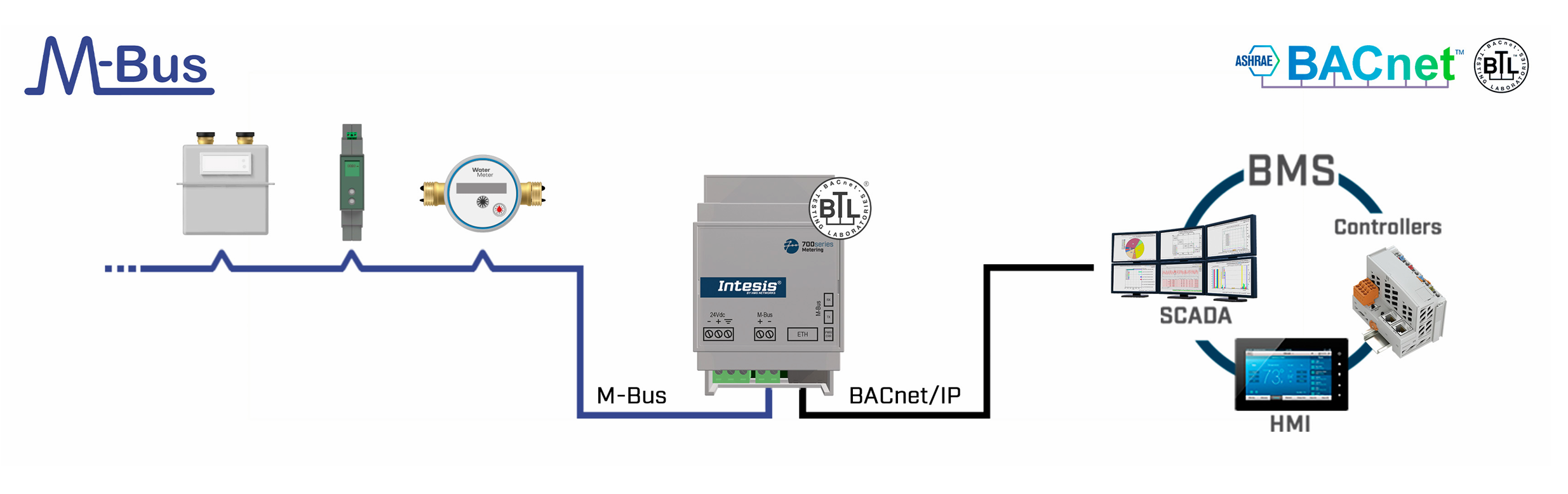 IN712MEB0200000 to przemysłowa brama komunikacyjna Intesis 700series Metering Gateway, zaprojektowana do integracji liczników M-Bus z systemami BACnet/IP lub Modbus TCP. Urządzenie obsługuje do 20 liczników i do 3000 aktywnych sygnałów, dzięki czemu jest odpowiednie dla średnich i dużych instalacji automatyki budynkowej i przemysłowej. Wbudowany konwerter poziomów M-Bus eliminuje konieczność stosowania dodatkowego sprzętu, co zmniejsza koszty oraz ułatwia wdrożenie. Gateway działa jako serwer po stronie IP oraz jako master na magistrali M-Bus, umożliwiając pełną kontrolę i monitorowanie liczników energii, wody czy gazu z poziomu BMS lub SCADA. Dzięki temu integracja meteringu w systemach zarządzania budynkiem jest znacznie prostsza i bardziej niezawodna.