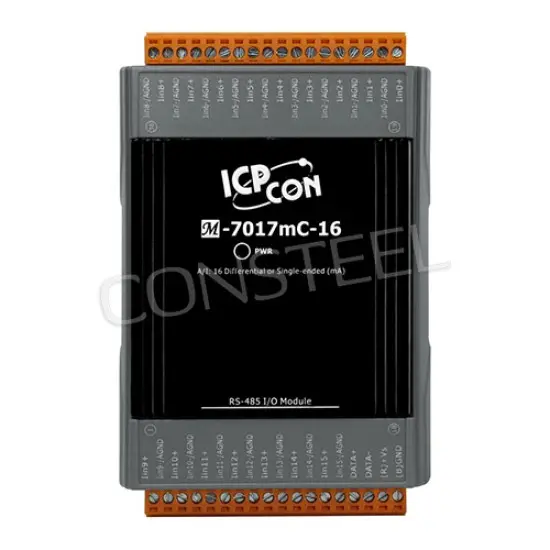 The M-7017mC-16 is a 16-channel current input module that is specifi cally designed to measure current only. Its user-friendly design saves both time and effort when measuring current thanks to built-in resistors, meaning that you can now measure current directly without needing to add an external resistor. The module also provides 4 kV ESD protection and 110 VDC overvoltage protection for the current input, and features 3000 VDC intra-module isolation and open wire detection for 4 ~ 20 mA input. The sampling rate on the M-7017mC-16 is adjustable, meaning that either fast mode or normal mode can be selected. The M-7017mC-16 contains a data logger that can be used to record the current input from all 16 channels, including date and time stamps, and is able to store up to 100,000 downloadable records.